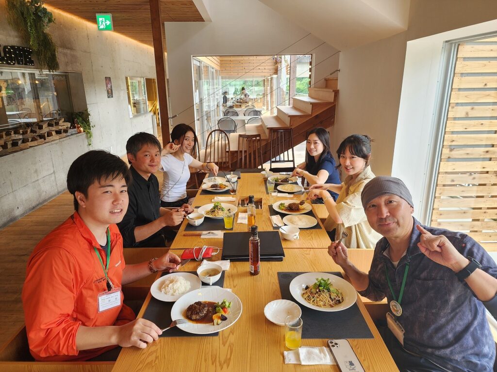 ・地元の料理を食べながら地域の方と交流
